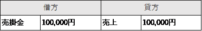 例えば、10万円の商品を販売し、後日支払の時の仕訳は次のようになります。