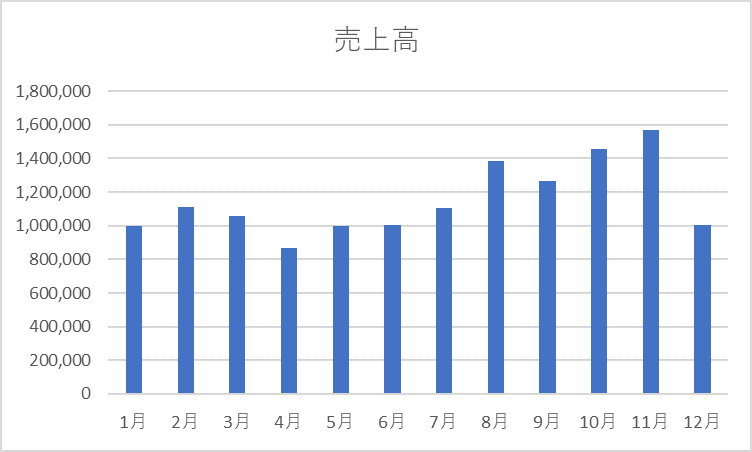 他のグラフに比べて情報量が多くないためスッキリした表示になります。長期的な売上傾向を分析する時には非常に見やすいグラフです。