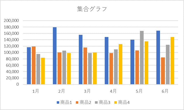 集合グラフは、項目ごとにそれぞれの数値を比較するのに向いています。