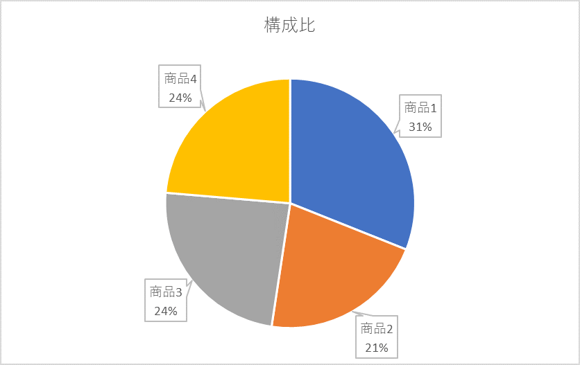 円グラフは、全体を100%として、要素の占める割合を表わすグラフです。
