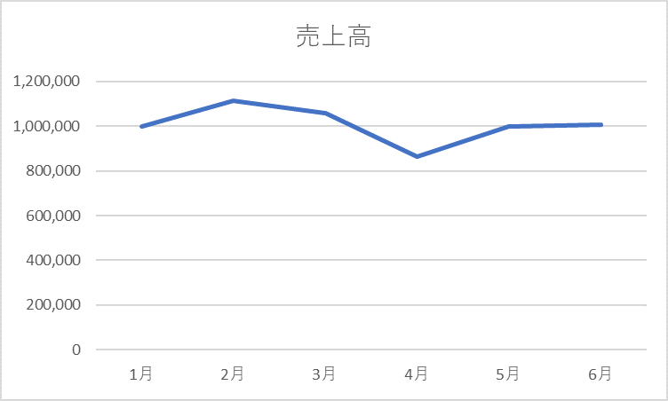 結論を言ってしまうと、売上の推移を一目で確認したい場合は折れ線グラフを使うのが効果的です。