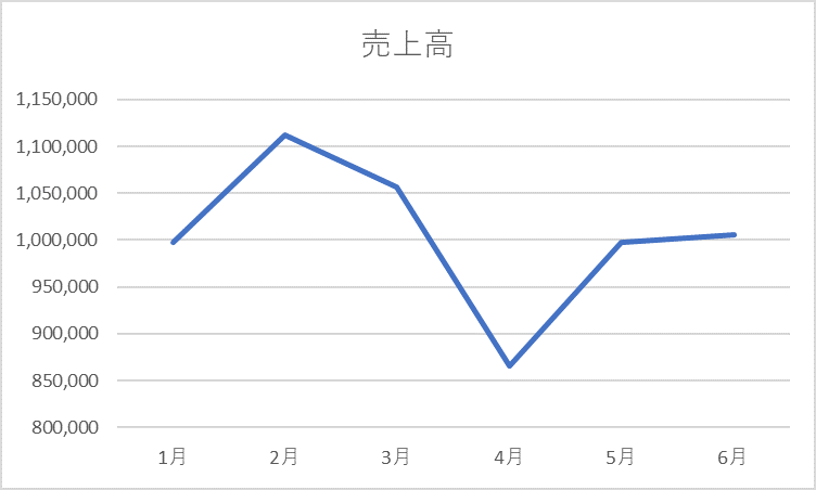 売上を折れ線グラフで表現するメリットは、数字の増減や変化が一目でわかることです。